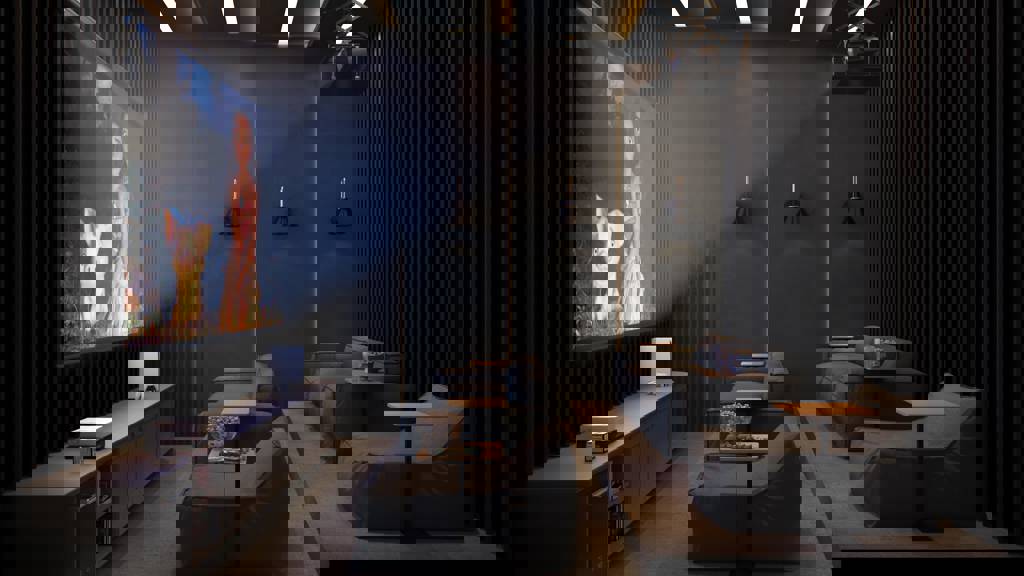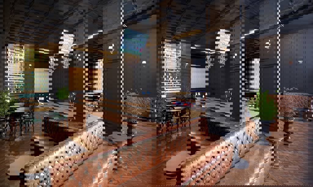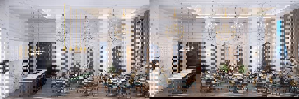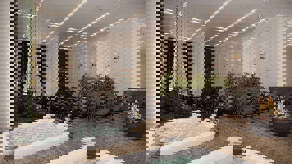 O projeto luminotécnico valoriza cada espaço, criando uma